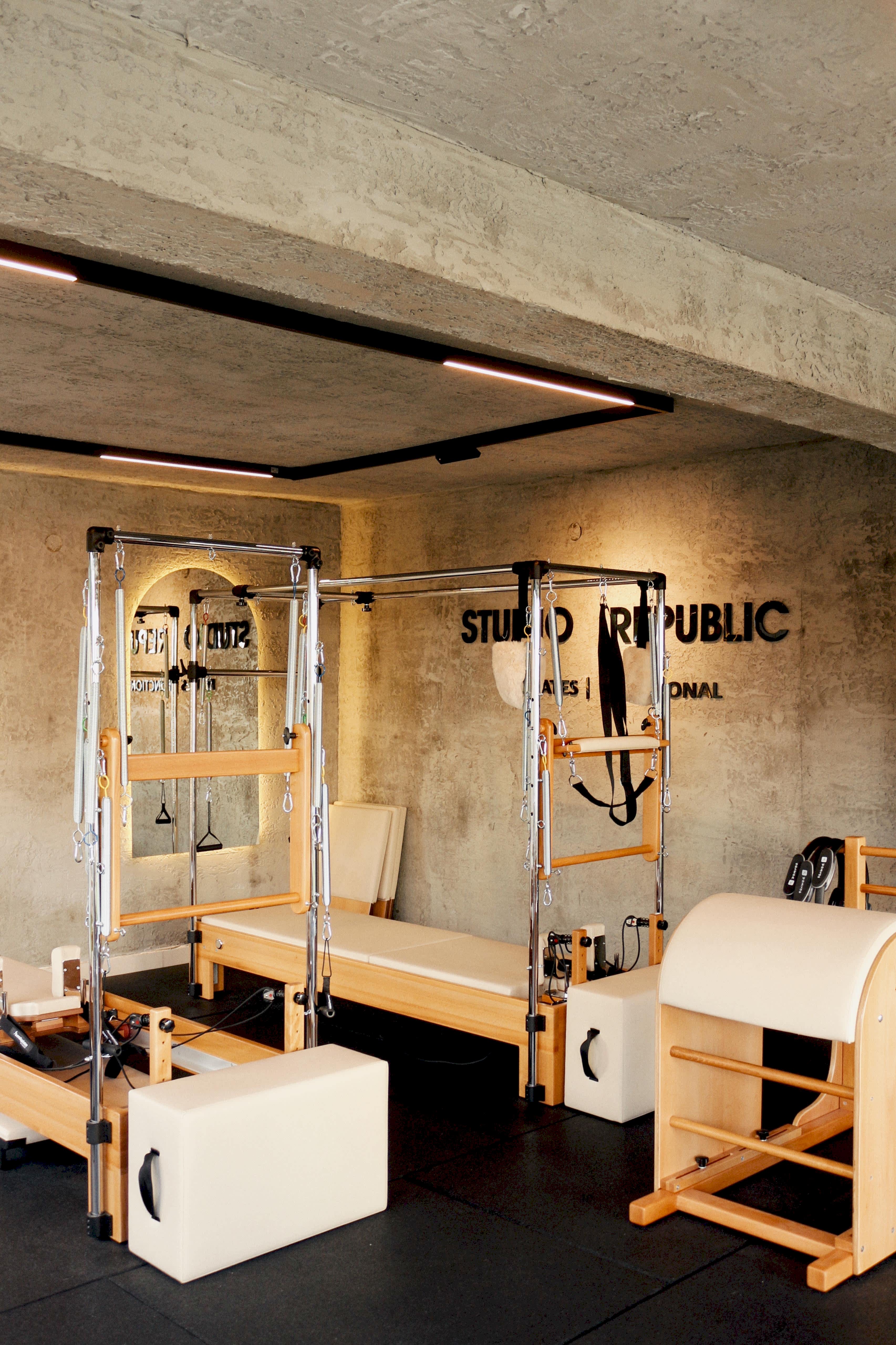 Yenilenmiş bir salon, Pilates yapmayı zevkli kılan bir ortam sunuyor.